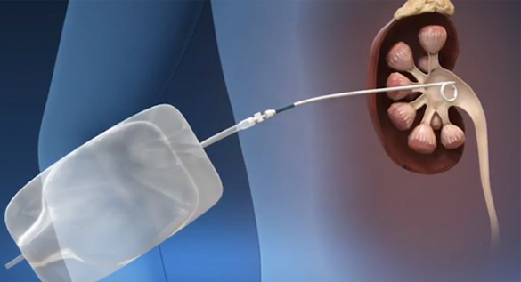 Placement of a tube directly into the kidney to drain urine when the ureter is blocked.