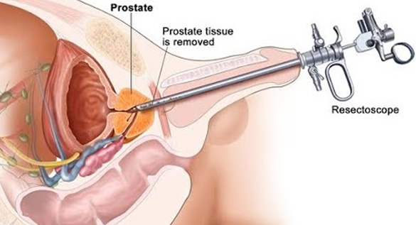 Surgical treatment for enlarged prostate by removing excess tissue through the urethra.