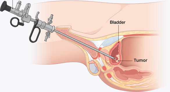 Procedure to remove bladder tumors using a resectoscope passed through the urethra.